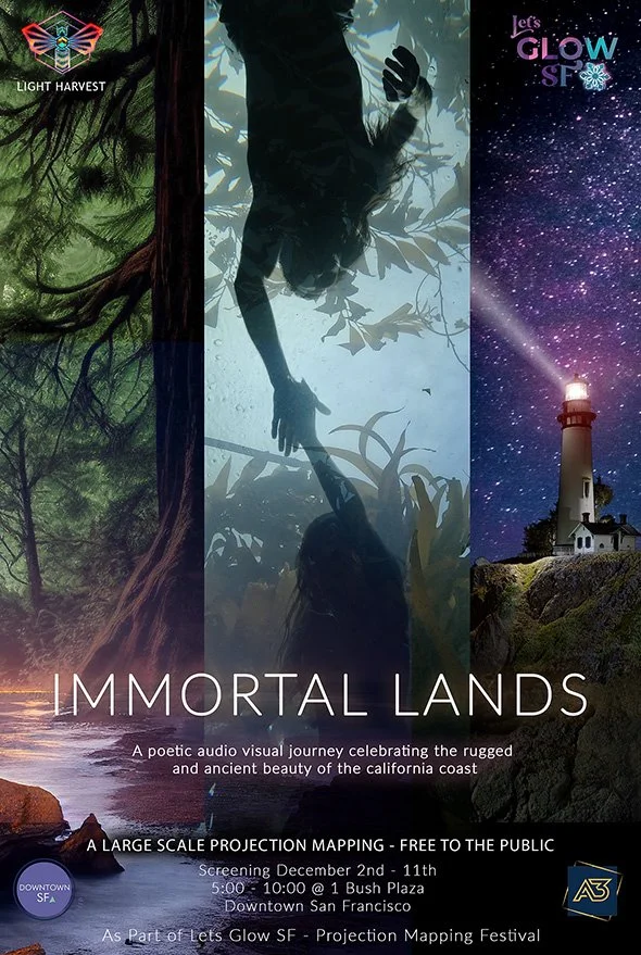 Lighting up Embarcadero in downtown SF, Immortal Lands is a poetic audio visual journey celebrating the rugged and ancient beauty of the California Coast.